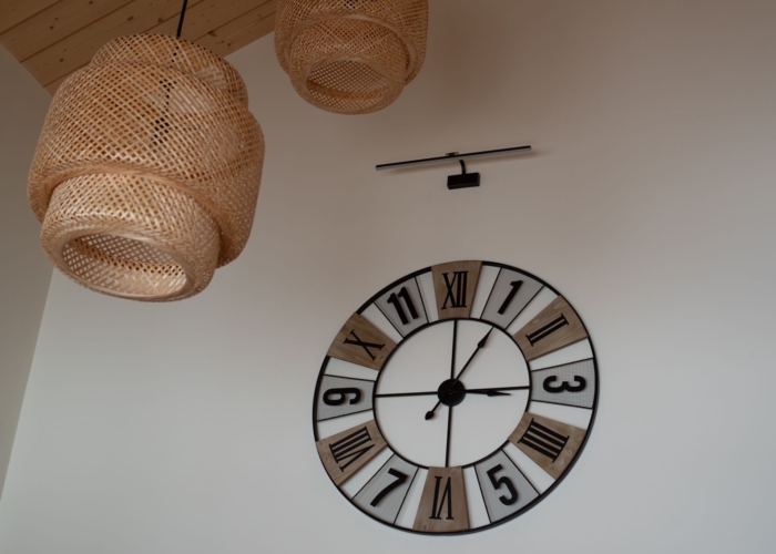 Nous avons également conçus des parties communes : une belle salle à manger et une grande cuisine, un sauna finlandais avec espace détente et un joli salon pour vous retrouver.